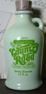 Oh my gosh, I LOVE these Coty Sweet Earth Country Road cologne bottles! The lid was glass but was painted to look like a little cork! It was such a cute little glass jug! The lilac and honeysuckle were my faves!