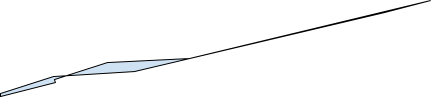 How to make the shape needed to trigger the bug appear convex to Skia but also fit in 32x32 pixels? Note that the shape is already x-monotone. Now assume we squash it in the y direction until it becomes (almost) a line lying on the x axis. It is still not y-monotone because there are tiny shifts in y direction along the line - but if we skew (or rotate) it just a tiny amount, so that it is no longer parallel to the x axis, it also becomes y-monotone. The only parts we can’t make monotone are vertical edges (edges 5 and 6), but if you squashed the shape sufficiently they become so short that their square length does not fit in a float and are ignored by the Skia convexity test. This is illustrated in Image 10. In reality these steps need to be followed in reverse, as we start with a shape that needs to pass the Skia convexity test and then transform it to the shape depicted in Image 9.